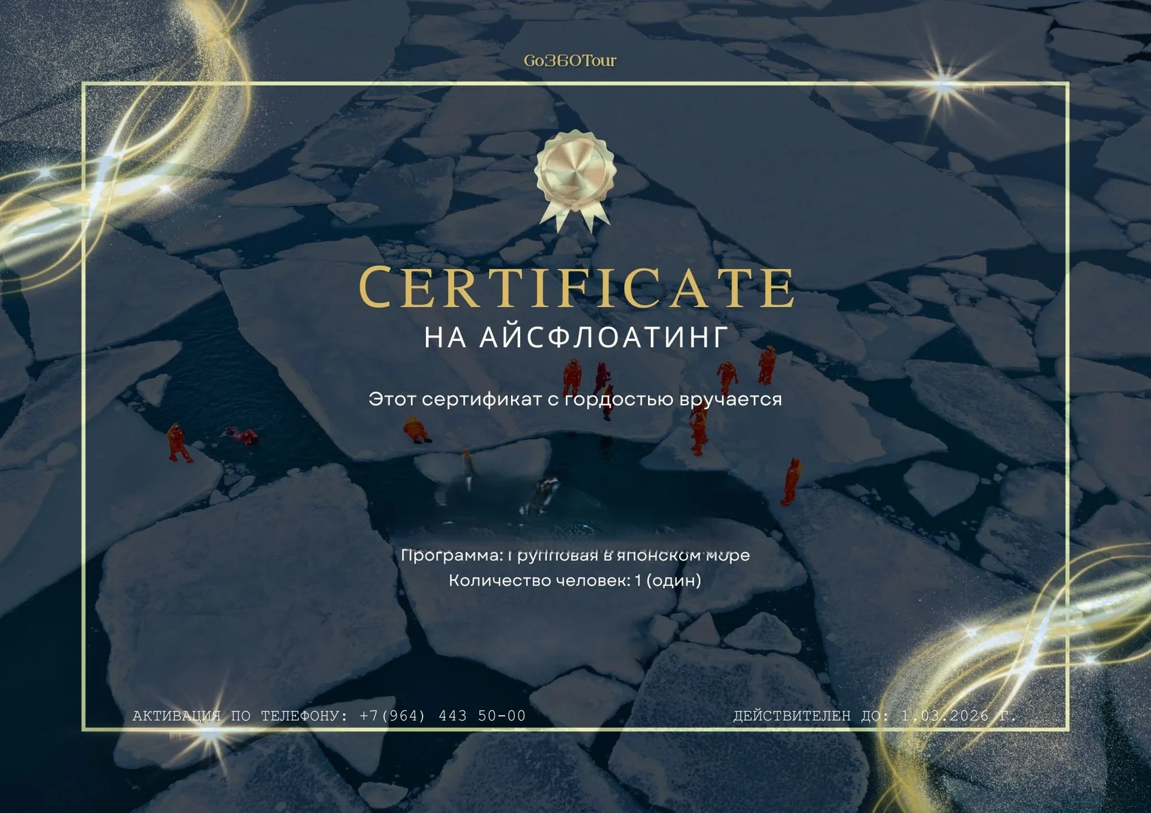 Вы лежите на поверхности воды, вокруг — лёд и море. Инструктор рядом, контролирует процесс.